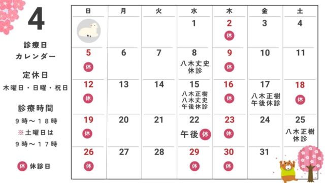4月15日(水)八木 正樹 八木 丈史 午後休診