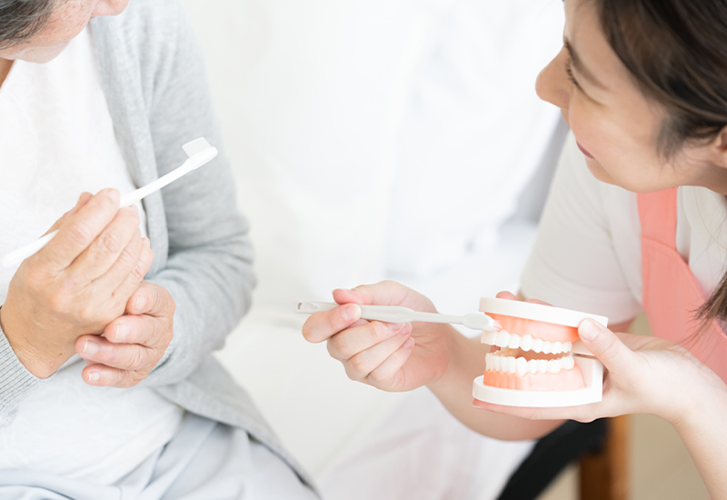 歯科医師や歯科衛生士の訪問により、生活環境や食習慣、嗜好を把握し、具体的で適切な指導や管理を受けられます。